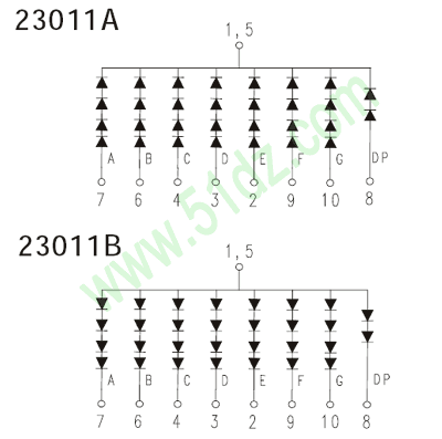 LED数码有共阳和共阴两种,把这些LED发光二极管的正极接到一块(一般是拼成一个8字加一个小数点)而作为一个引脚,就叫共阳的,相反的,就叫共阴的,那么应用时这个脚就分别的接VCC和GND。再把多个这样的8字装在一起就成了多位的数码管了。